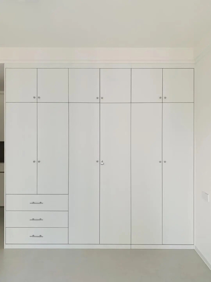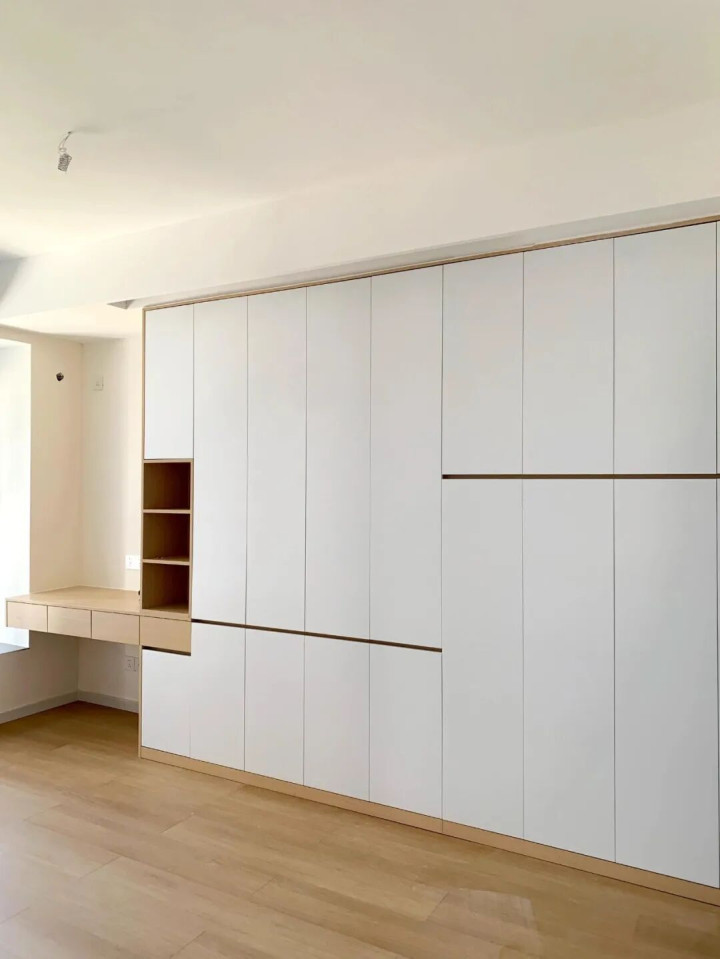 我媳妇却坚持选浅色,说“柜子占面积大,颜色选错了,整个房子都显压抑,浅色才百搭耐看,还显大”,我现在发现,这样做是最稳妥的。