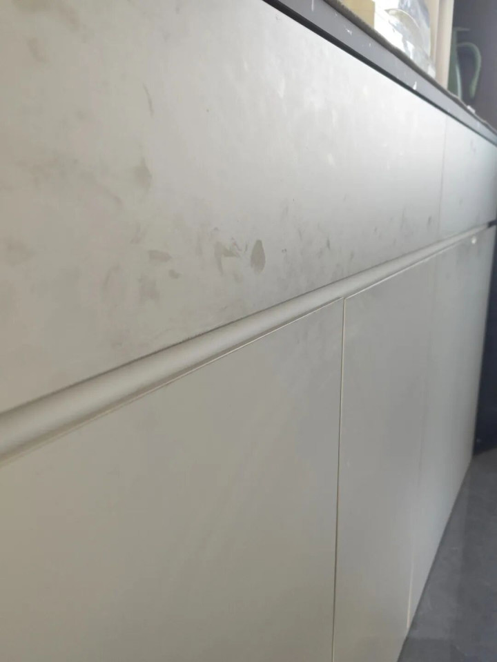 厨房一日三餐开火,柜门难免沾油污、手印,哑光柜门和肤感膜柜门,看着高级,实则巨难打理,一点油污、一个手印就特别明显,每天擦累得要死,时间长了还会发黄、显旧。