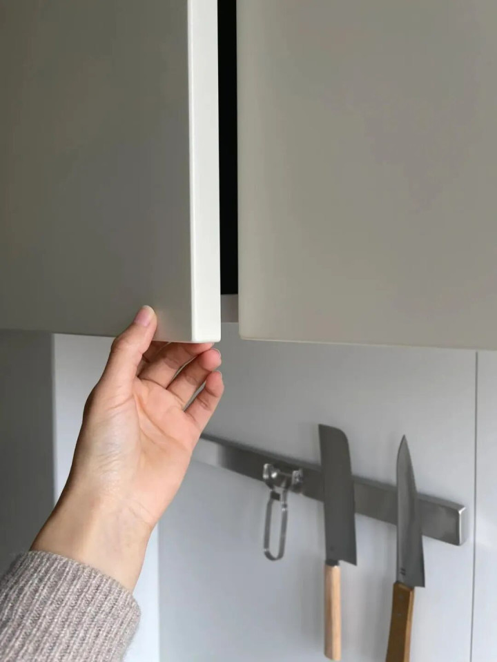 柜子拉手,许多明装的好看、有设计感,还有各种造型,可媳妇坚决反对,说明装拉手危险,非要做隐形拉手,最后还是听了她的。