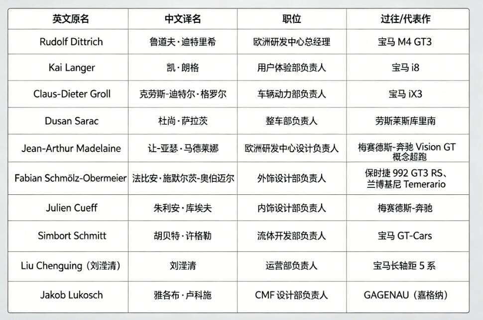 很多人只当是玩笑,但看完这支团队的履历,你就会明白:这哪是挖人,这是把欧洲豪华性能车的技术家底、设计灵魂、工程精髓,直接打包搬进了小米。小米选慕尼黑—— 宝马、奔驰总部所在地,相当于在对手家门口建 “人才大本营”。从人员配置来看,小米不是今天挖一个设计师,明天挖一个工程师,而是按部门、按领域、按能力闭环挖。慕尼黑中心直接配齐:整车、动力、外饰、内饰、CMF、用户体验、流体动力、硬件开发……一套能从零打造高性能豪车的完整班底。对传统车企来说,这不是流失一两个人,是核心技术与设计能力被 “连锅端”。
